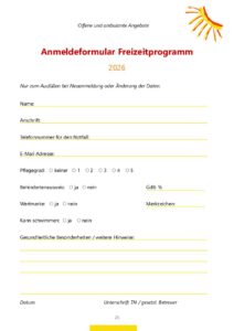 Anmeldeformular Freizeitprogramm